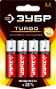 Батарейка пальчиковая щелочная тип AA 1,5 В ЗУБР Turbo 59213-4C, 4 шт