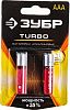 Батарейка минипальчиковая щелочная тип AAA 1,5 В ЗУБР Turbo 59211-2C, 2 шт