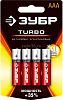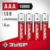 Батарейка минипальчиковая щелочная тип AAA 1,5 В ЗУБР Turbo 59211-4C_z01, 4 шт