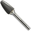 Твердосплавная борфреза 12,5х25х65 мм РИ ri.377.20 со спиральной насечкой, гиперболической формы (F) со сферическим торцом идеально подходит для обработки алюминия, меди, латуни, бронзы, а также мягкой стали и пластиков. Имеет универсальную область применения в машиностроении, судостроении и других отраслях. Используется в основном на ручных пневматических и электрических шлифовальных машинах. Цилиндрический хвостовик подходит для ручных шлифмашин всех видов и станков с кулачковым патроном. Твердый вольфрам-кобальтовый сплав ВК8 обеспечивает высокую износостойкость и позволяет эффективно работать с широким спектром металлов на высоких скоростях.