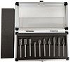 Набор Профоснастка №701 состоит из 10-ти бор-фрез всех форм (A, B, C, D, E, F, G, H, L, M) диаметром 10 мм и предназначен для использования на прямых шлифовальных машинах для обработки листов и массивных заготовок металлов различных сортов и сплавов. Материал оснастки — карбид вольфрама, обладает высокой износостойкостью и долго сохраняет заточку.
