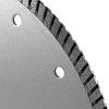 Диск оснащён турбо-сегментами с оптимизированной связкой FB/M, разработанной специально для работы с бетоном и армированными конструкциями. Турбо-профиль (волнообразная или зазубренная кромка) обеспечивает интенсивное охлаждение, самоочищение от пыли и высокую скорость реза даже при длительной работе в тяжёлых условиях. Подходит для сухой и мокрой резки на угловых шлифовальных машинах (болгарках) и рельсовых резчиках с посадочным отверстием 22,2 мм. Благодаря сбалансированной конструкции и надёжной пайке сегментов обеспечивает стабильный ход без вибрации и глубокий рез до 60–65 мм.