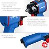Гайковёрт оснащён стандартным присоединительным квадратом 1/2 дюйма с фрикционным кольцом и развивает крутящий момент до 610 Н·м при рабочем давлении 6,3 атм. Сетчатый фильтр на входе в воздухозаборник защищает внутренние узлы от загрязнений. Пневматический привод делает инструмент пожаробезопасным, исключая риск искрообразования. Конструкция механизмов и корпуса способствует снижению уровня вибрации и шума, обеспечивая комфорт при длительной эксплуатации.