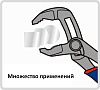 Рабочая часть выполнена из хромованадиевой стали Cr-V, что обеспечивает прочность инструмента и долговечность его использования. Закаленная зубчатая поверхность губок обеспечивает надежный захват деталей. Рукоятки эргономичной формы, что гарантирует плотное прилегание инструмента к руке и отсутствие скольжения.