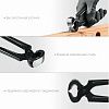 - Клещи изготовлены из кованой закаленной стали, обеспечивающей высокую износостойкость и сопротивление нагрузкам.