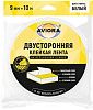 Лента двусторонняя клейкая на вспененной основе 9 мм 10 м Aviora 302-013, белая