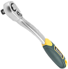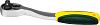 Рукоятка трещоточная 1/2" Kraftool Pro 27795-1/2_z02 с флажковым переключателем используется с торцевыми головками для обслуживания резьбовых соединений в местах с ограниченным пространством. Применяется при производстве работ со слабонагруженными резьбовыми соединениями. Храповое колесо в 72 зубца, обеспечивающее 5° свободного хода, гарантирует большой запас прочности при высоком крутящем моменте. Оснащена двухкомпонентной изогнутой рукояткой, обеспечивающей надежный захват инструмента при работе. Корпус выполнен из хромованадиевой (Cr-V) стали с хромированным покрытием, а трещоточный механизм - из хромомолибденовой (Cr-Mo) стали.