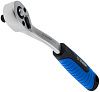 Рукоятка трещоточная 1/2" ЗУБР 27730-1/2 с флажковым переключателем используется с торцевыми головками для обслуживания резьбовых соединений в местах с ограниченным пространством. Храповое колесо в 72 зубца, обеспечивающее 5° свободного хода, гарантирует большой запас прочности при высоком крутящем моменте. Оснащена двухкомпонентной рукояткой, обеспечивающей надежный захват инструмента при работе. Корпус выполнен из хромованадиевой стали (Cr-V), трещоточный механизм - из хромомолибденовой стали (Cr-Mo).