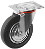 Колесо Longway SC предназначено для оснащения различного промышленного оборудования: грузовых тележек, передвижных станков, строительных лесов, вышек, контейнеров, платформ и т.п. Находит применение в производственных цехах, складских помещениях и на строительных площадках. Благодаря роликовому подшипнику поворотное колесо обладает низким сопротивлением качению. Кронштейн с платформой и обод изготовлены из стали и оцинкованы. Контактная часть колеса из литой черной резины подходит для использования на грубой напольной и дорожной поверхности. Материал обладает хорошим сцеплением даже с мокрым полом и не портит покрытие.