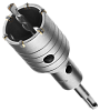 Коронка по бетону ProHammer Stayer с державкой SDS-Plus - это профессиональная оснастка для сверления отверстий большого диаметра в особо твёрдых минеральных основаниях. Предназначена для использования с мощными перфораторами (от 850 Вт) в ударном режиме сверления с отбором керна. Является незаменимым решением для монтажных и строительных работ: прокладки инженерных коммуникаций (электрика, сантехника, вентиляция), установки розеток, выключателей, распределительных коробок, анкеров и закладных элементов в бетонных, кирпичных и каменных конструкциях.