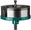 Кольцевая наборная пила по дереву Kraftool 29582-H3-32 — это профессиональное решение для аккуратного сверления отверстий больших диаметров в фанере, дереве, ДСП, гипсокартоне и пластике при монтаже электророзеток, потолочных светильников, распределительных коробок, крупных потолочных светильников, вентиляционных каналов и прохода канализационных труб. Набор включает пять полотен диаметром 68, 74, 80, 90 и 100 мм, а также державку и центрирующее сверло.
