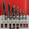 - Метчики с усиленным хвостовиком DIN 371: M3x0,5 мм; M4x0,7 мм; M5x0,8 мм; M6x1 мм; M8x1,25 мм; M10x1,5 мм.