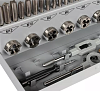 Резьбонарезной набор H-Tools 245010HT содержит оснастку самых востребованных типов и размеров, а именно 21 метчик, 7 плашек, плашкодержатель, вороток для метчиков, отвертку и резьбомер. Метчики предназначены для нарезания внутренней метрической резьбы в три прохода под болты, резьбовые вставки и винты, а плашки - для нарезания наружной метрической резьбы. Обрабатываемые материалы: углеродистая и низколегированная сталь с прочностью до 800 Н/мм², алюминий, пластик и цветные металлы. Инструменты надежно закреплены в прочном и компактном деревянном чемодане, пригодном для хранения и транспортировки.