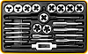 - В наборе: метчики, плашки, метчикодержатель М5-М12, плашкодержатель ø25 (М5-М12), трубный G1/8-27.
