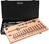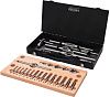 - Инструмент укомплектован в удобный ложемент из бука и поставляется в прочном металлическом кейсе.