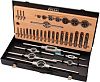 - Набор включает: метчики DIN352, плашки DIN EN 22568, воротки для метчиков DIN 1814: №1 и №3, воротки для плашек.