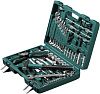 - Универсальный набор со всеми основными инструментами: торцевые головки, биты, имбусовые и гаечные ключи, удлинители, адаптеры, отвертки, молоток, плоскогубцы, клещи и трещоточная рукоятка