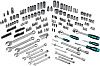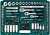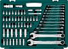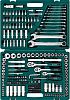 - Набор для работы с крепежом со всеми основными инструментами: торцевые головки, биты, имбусовые и гаечные ключи, удлинители, адаптеры, воротки и трещоточная рукоятка