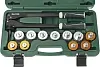 Расширитель-калибратор для муфт под пайку и труб из цветных металлов Kraftool 10 - 28 мм / 1/4 - 3/4" 23650-H12 используется для калибровки и монтажа труб без использования фитингов в системах водо- и газоснабжения, отопления, кондиционирования и в холодильной технике. Это ручной инструмент для одновременного расширения конца металлической трубы и выравнивания, зачистки ее внутренней поверхности. Он создает идеально круглое, ровное и чистое раструбное соединение под пайку, которое обеспечивает абсолютную герметичность и прочность.