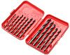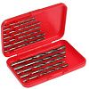 Набор включает спиральные сверла с цилиндрическим хвостовиком диаметром от 3 мм до 8 мм. Поставляются в удобном пластиковом боксе.
