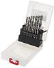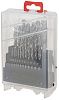 Предназначены для профессиональных работ и выполнены по самым современным технологиям, где применяется индуктивная закалка и пайка. Крестообразная подточка позволяет начать сверлить без предварительного кернения. Угол заточки при вершине равный 135° повышает производительность работ. Сверла с шагом 0.5 мм от 1 до 10 мм позволят выполнить любую задачу по сверлению, а пластиковый кейс надежно позволит не потерять сверла.