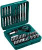 - Набор из 43 предметов включает отвёртку, 30 бит, 7 торцевых головок, 3 винтовых сверла и 2 адаптера.