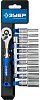 - Набор с основными размерами торцевых головок, трещеточной рукояткой и удлинителем