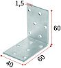 Уголок крепежный равносторонний 60х40х1,5 мм KUR, оцинкованная сталь