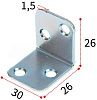 Уголок крепежный мебельный 26х26х30х1,5 мм, оцинкованная сталь