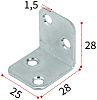 Уголок крепежный мебельный 28х28х25х1,5 мм, оцинкованная сталь