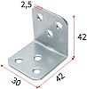 Уголок крепежный мебельный 42х42х30х2,5 мм, оцинкованная сталь