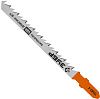 Внимание! При установке и снятии полотна отключите лобзик от электросети.Не рекомендуются для фигурной резки с малыми радиусами или для ламината без защиты кромки — крупный зуб может вызывать сколы.