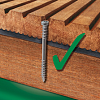 С - Фиксирующая резьба крепко держит шуруп в доске, не позволяя ей подниматься и «ходить», шляпка не проваливается в нее.