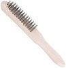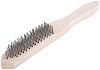 Ручная щетка FIT 38405 предназначена для удаления ржавчины, старого слоя краски и загрязнений, зачистки металлических, деревянных и других поверхностей. Инструмент пригодится при подготовительных работах, например, при очистке поверхности перед покраской, а также для финишной обработки. С её помощью обрабатывают поверхность вручную, когда, например, нет возможности работать болгаркой. Рабочая часть щетки представляет собой несколько рядов прямой проволоки из стали. Благодаря 5 рядам проволоки она обеспечивает равномерную и эффективную обработку поверхности. Прочная деревянная ручка обеспечивает удобный хват.