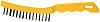 Ручная щетка FIT 38431 предназначена для удаления ржавчины, старого слоя краски и загрязнений, зачистки металлических, деревянных и других поверхностей. Инструмент пригодится при подготовительных работах, например, при очистке поверхности перед покраской, а также для финишной обработки. С её помощью обрабатывают поверхность вручную, когда, например, нет возможности работать болгаркой. Рабочая часть щетки представляет собой несколько рядов прямой проволоки из инструментальной стали. Благодаря 5 рядам проволоки она обеспечивает равномерную и эффективную обработку поверхности. Пластмассовая ручка защищает от ударов и обеспечивает удобный хват.