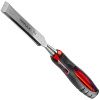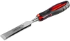 Инструмент имеет плоскую форму. Рабочая часть выполнена из стали 65Г, закалена до твёрдости 60-69 HCR, отличается износостойкостью и долгое время не нуждается в заточке. Прозрачная двухкомпонентная рукоять не скользит в руке, обеспечивая надежный и комфортный хват. Благодаря металлическому затыльнику можно производить удары для выборки более глубоких пазов.