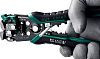 - Автоматическая настройка зажимных губок, одновременная зачистка до 3-х проводов и окно для сброса обрезков изоляции.