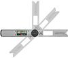 - Функции: проверка точности углов, транспортир с надежной фиксацией угла, пузырьковый уровень.