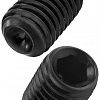 Винт установочный черный DIN 916 (ISO 4029) – резьбовой крепеж в виде шпильки с шестигранным гнездом на одном торце и засверленным коническим углублением на другом. Выполнен из углеродистой стали, закален до высокой прочности (12.9) и твердости поверхности (45H). Оксидная пленка защищает сталь от негативного воздействия внешней среды. Широко используется для соединения деталей в различных механизмах от машин и станков до приборов и часов.