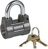 Дужка из закаленной стали с сечением диаметром 10 мм удобно крепится на стандартных скобах, позволяя запирать ворота, калитки, люки и складские емкости. Особенностью модели является дисковый механизм секрета с 7 тысячами комбинаций, обеспечивающий устойчивость к взлому и интеллектуальному вскрытию.
