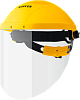 - Дополнительный козырек из того же материала предохраняет верхнюю часть головы и лоб от падающих сверху предметов или брызг.